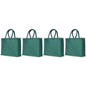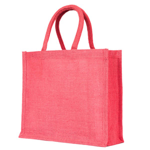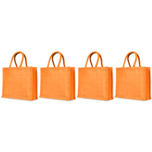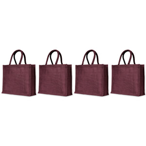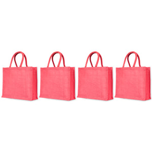Jute Tote Bags – Burlap Shopping Bags in Red, Pink, Green & Orange – Perfect for Thanksgiving, Christmas, Weddings & Travel (Set of 4)