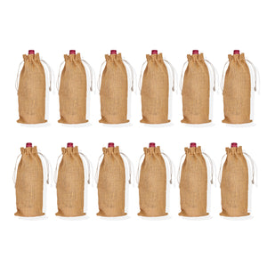 Reusable Jute Wine Bottle Bags – Burlap Drawstring Pouches for Wine & Bottles – Ideal for Weddings, Parties & Bulk Gift Packaging (Packs of 12)