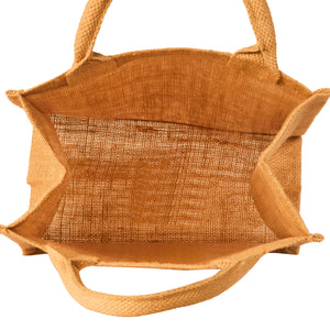 Premium quality and eco-friendly design – Crafted from 100% natural jute fabric with a laminated interior, this bag offers enhanced durability and water resistance while maintaining a stylish and environmentally friendly appeal.