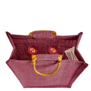 - Elegant & Durable Jute Wine Bags – Made from high-quality jute, these two-bottle wine totes add a sophisticated flair while keeping bottles secure—ideal for gifting at housewarmings and celebrations. Available in Deep Red, Pink, Green & Orange Shades.