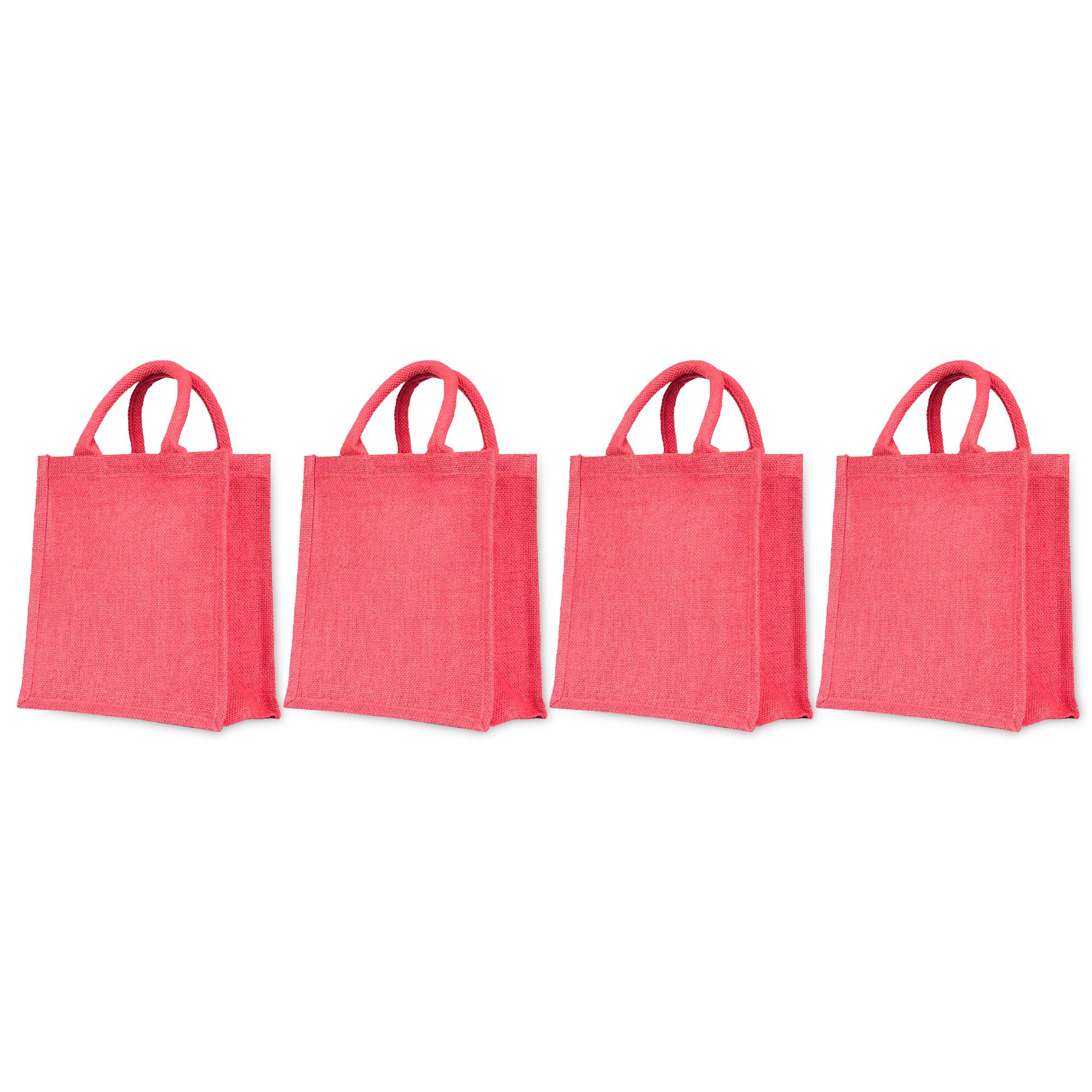 • Eco-Friendly Fashion in a Colorful Set of Four – Crafted from high-quality jute, these lightweight, biodegradable totes offer a sustainable and stylish solution for shopping, storage, or personalized gifts, available in four vibrant shades—Deep Red, Pink, Green, and Orange—to brighten and organize your everyday routine.