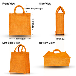 • Roomy & Structured Design- Each bag measures 10″ x 10″ x 4″ and features a gusset for extra space—ideal for grocery hauls, picnic items, or party favors. Comfort Meets Strength- Designed with soft padded round handles, these totes are easy to carry, even when loaded. Crafted from durable jute-cotton fabric, they maintain shape and strength over time.