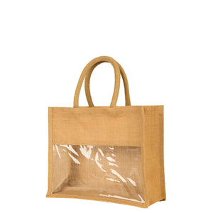 Superior Jute Craftsmanship:Made from 100% natural jute, this elegantly designed bag features a transparent PVC film window on the front, offering a modern yet eco-friendly aesthetic.