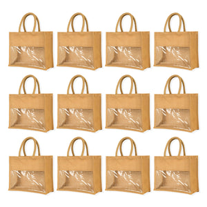 Jute Tote Bags with PVC – Gifts for Events, Weddings, New Year, Christmas, Promotional (Set of 12)