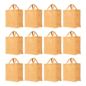 Sturdy Natural Jute Tote Bags – Eco-Friendly Reusable Burlap Bags for Shopping, Events, Gifts & DIY Projects (Set of 12)