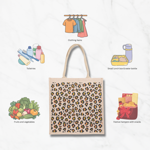 Eco-Friendly Natural Jute Tote Bag – Cheetah-Inspired Printed Reusable Bag for Shopping, Groceries, Travel, Beach, and Daily Use