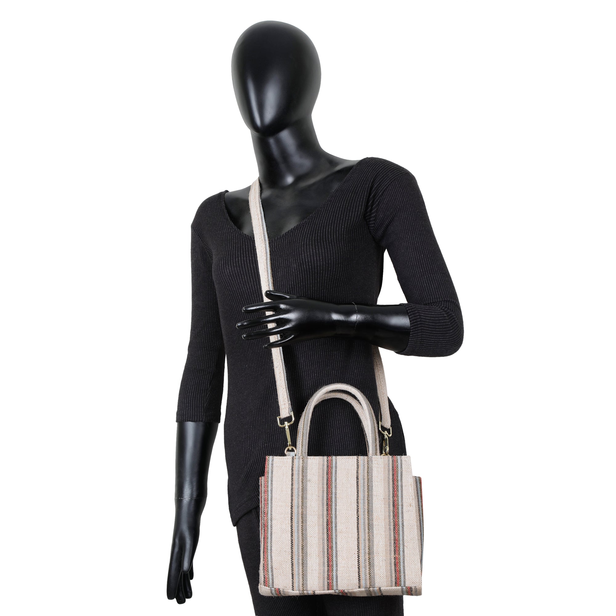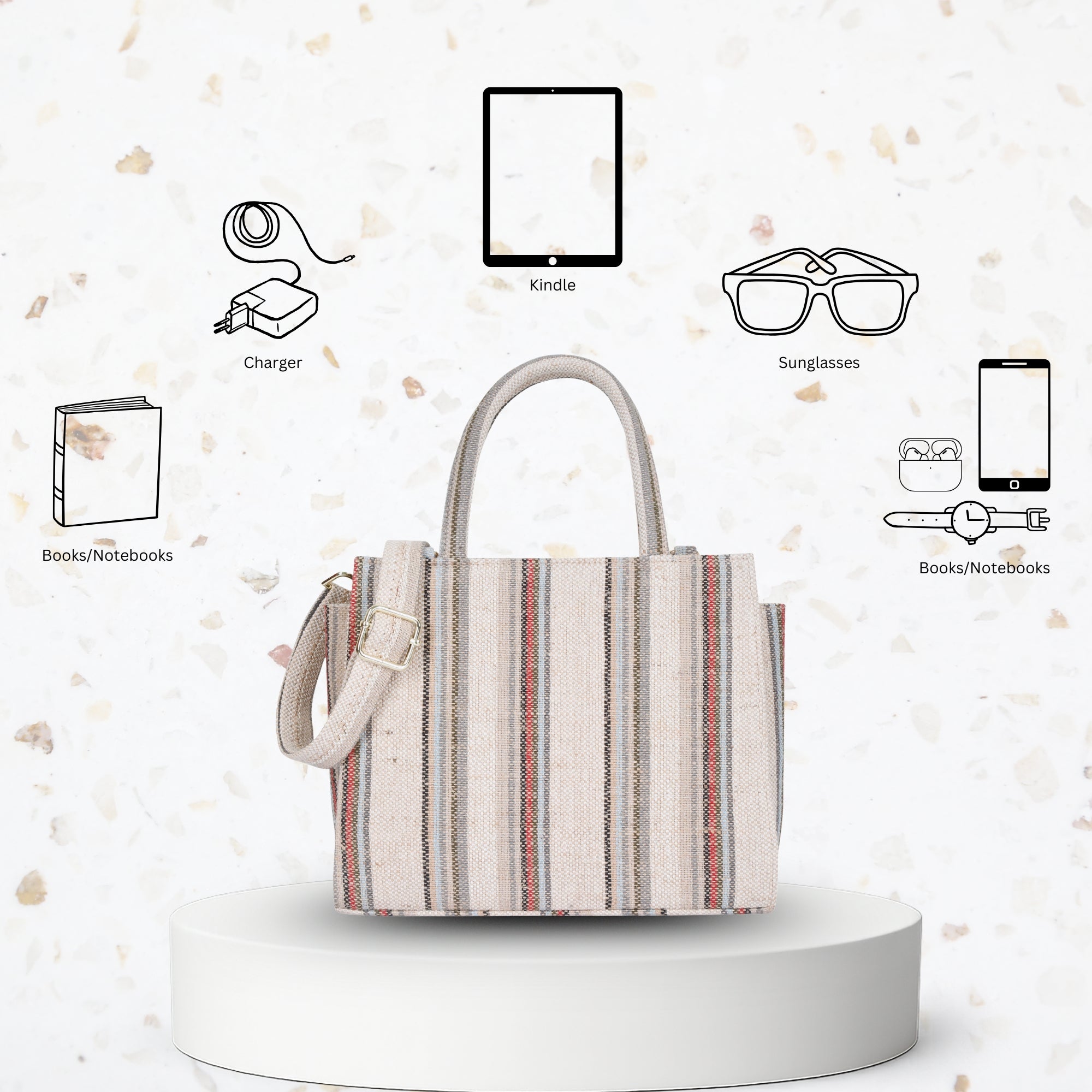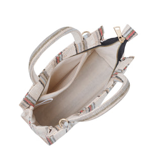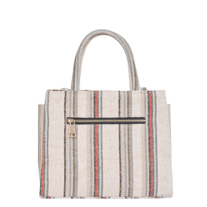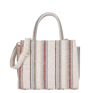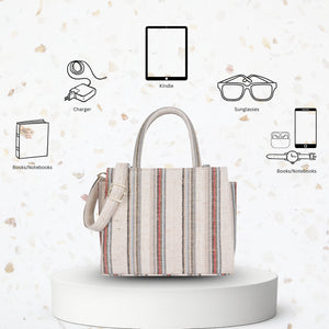 Stylish & Durable: Crafted from premium hand-crafted canvas fabric, this top handle crossbody bag is both sturdy and elegant. Its beige base with brown and grey stripes adds a touch of timeless sophistication — not just a bag, but a statement of personality and style.