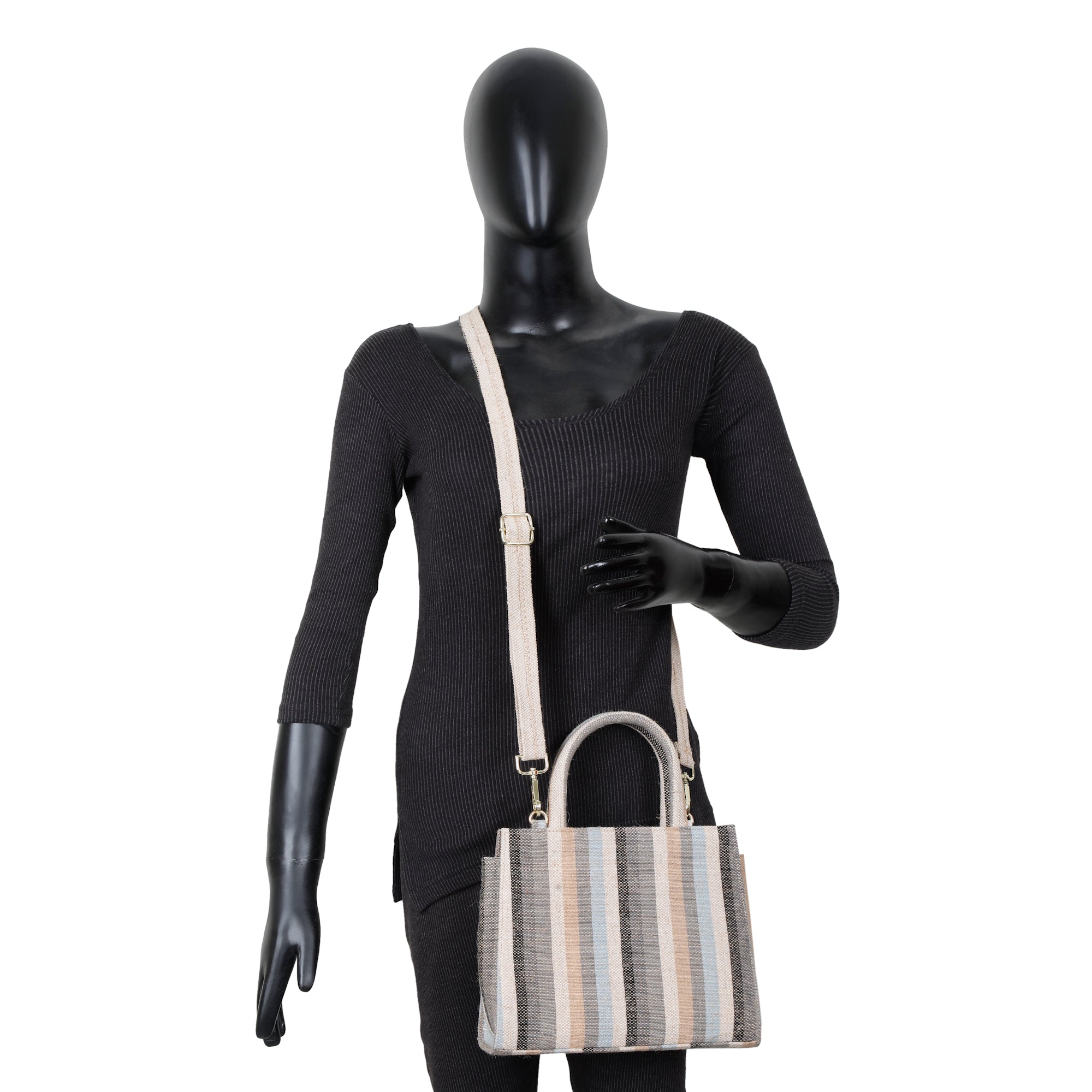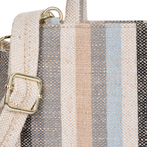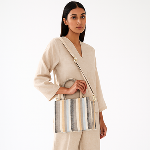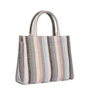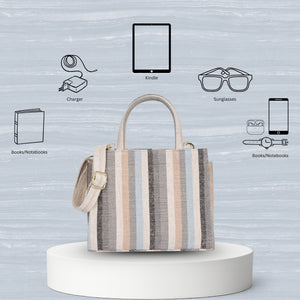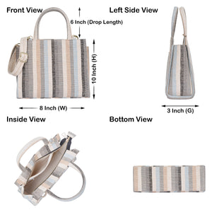 Stylish Top Handle Handbag for Women: Crafted from premium hand-crafted canvas fabric, this top handle purse offers both strength and elegance. The beautiful multicolor striped design adds a lively yet refined touch, making it a perfect choice for women who love functional fashion.