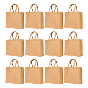 Jute Tote Bags– Reusable Bags for Shopping, Travel, Holidays, Weddings, Beach & Gifts (Packs of 12)