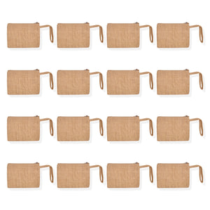 16-Pack Small Natural Jute Cosmetic Bags for Women – Personalized Makeup, Toiletry & Coin Pouches, Perfect for Bridesmaids & Friends