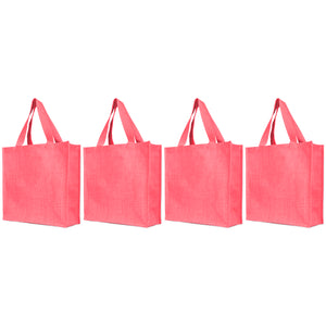 Reusable Jute Bags – Shopping, Gifting, Wedding, Daily Use – Deep Red, Pink, Green & Orange (Set of 4)