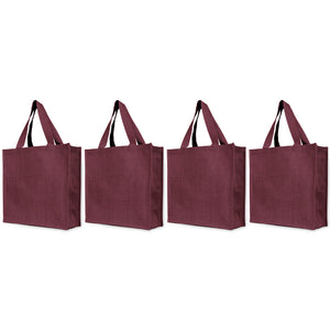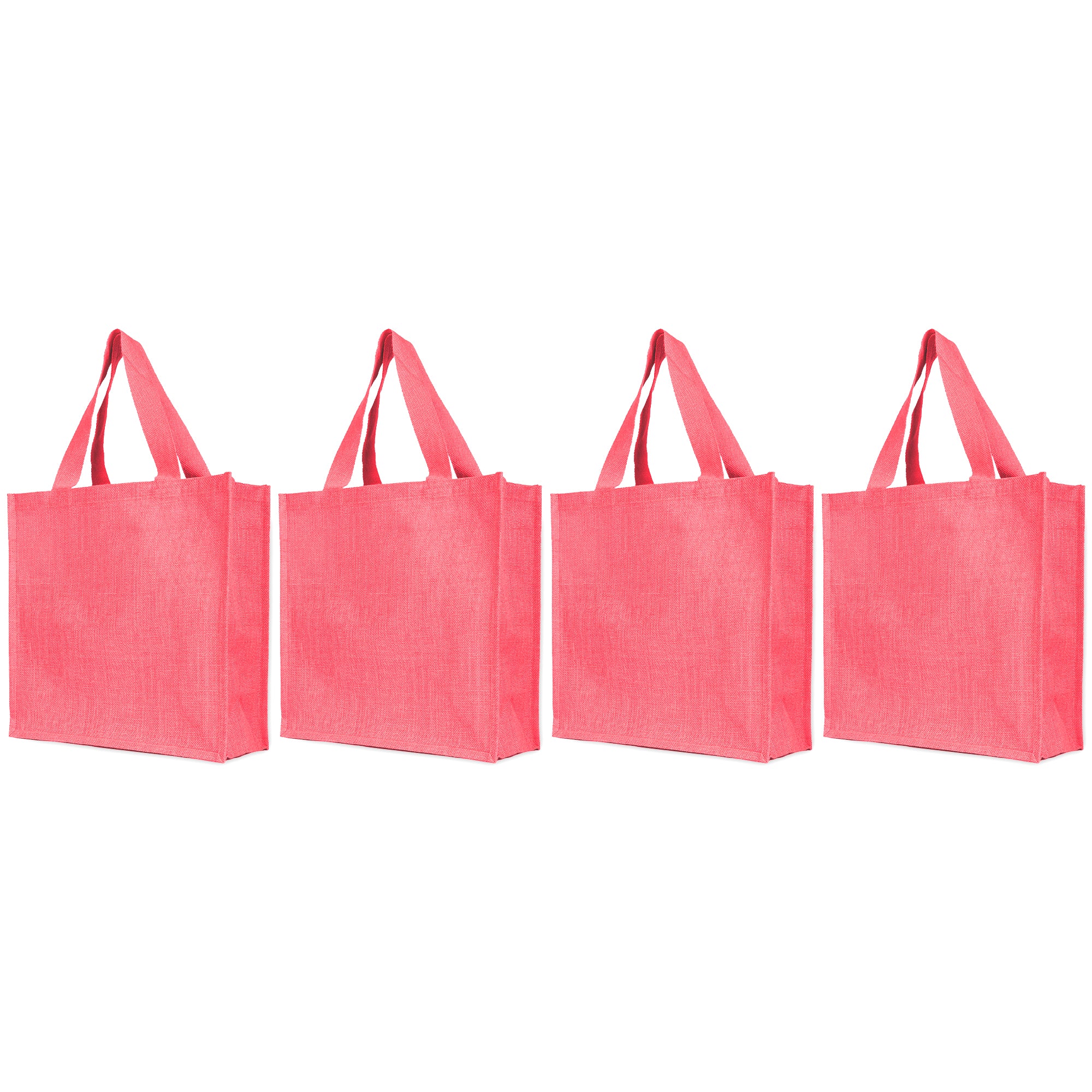 Home Reusable Jute Bags – Shopping, Gifting, Wedding, Daily Use – Deep Red, Pink, Green & Orange (Set of 4)