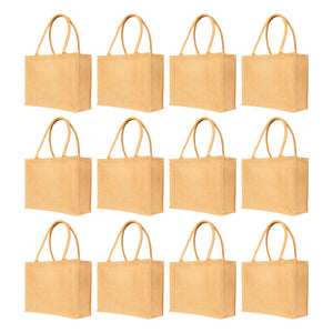 Jute Tote Bags – Sturdy Reusable Burlap Totes for Shopping, Travel, Holidays, Weddings & Everyday Use (Set of 12)