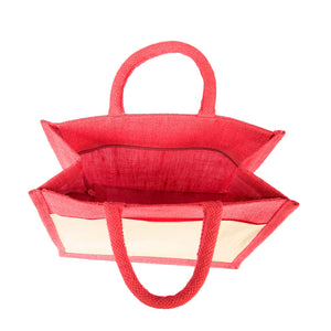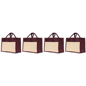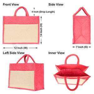 Jute Shopping Bags in Red, Green, Orange, and Pink – Burlap Totes for Weddings, Holidays, Shopping & Daily Use (Set of 4)