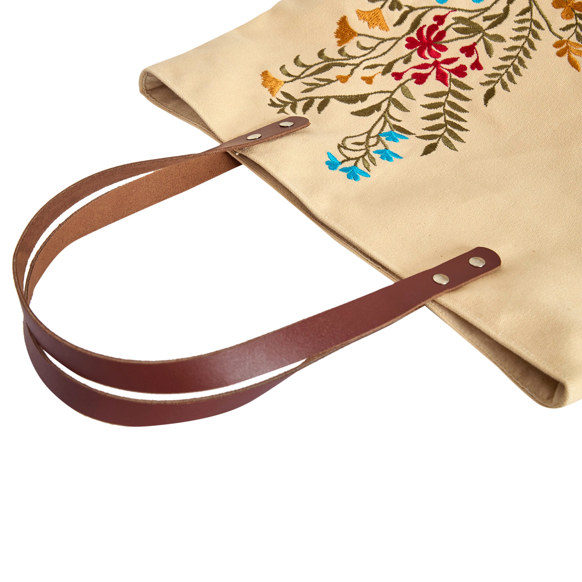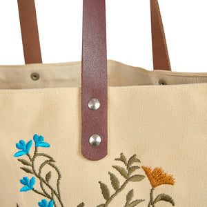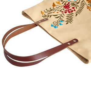 Women's Canvas Tote Bag Floral Embroidery with Leather Straps Travel, Gifting, New Year, Christmas, Special Occasion
